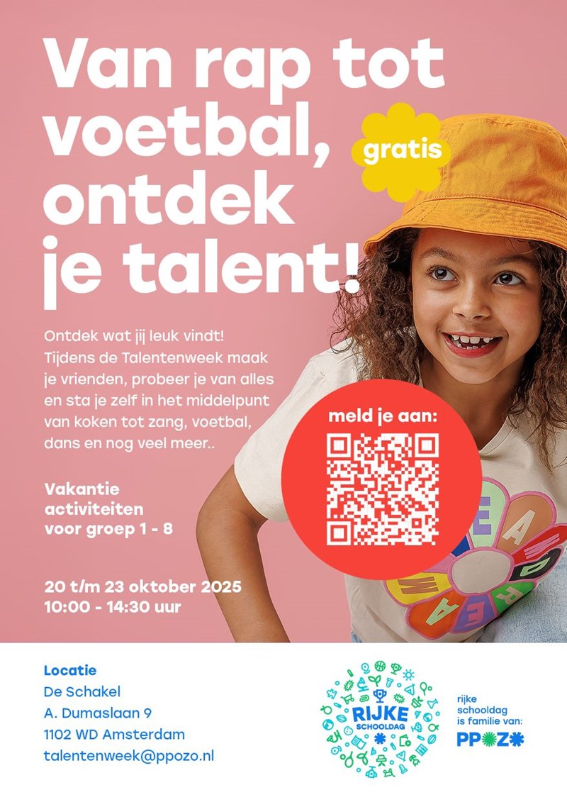 In de herfstvakantie organiseren we de Talentenweek voor kinderen uit groep 1 t/m 8. Een week vol leuke, gratis activiteiten waarin kinderen hun talenten kunnen ontdekken!